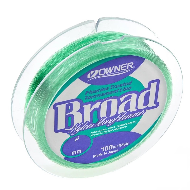 Монофил Broad - универсальная леска от фирмы Owner. Она подойдет для большинства способов ловли, например, для спиннинга, поплавочной ловли или донных оснасток. Она прозрачна и невидима в воде, благодаря чему не отпугивает осторожную рыбу. Леска отличается высокими показателями разрывной нагрузки, хорошо сохраняет прочность на узлах. Специальное защитное покрытие повышает ее антиабразивные качества и износостойкость, за счет чего леска хорошо подходит для донных и фидерных снастей. Производитель утверждает, что леска Owner Broad хорошо калибрована и имеет точный выверенный диаметр по всей длине. Также к ее достоинствам относится минимальная растяжимость и высокая чувствительность. Выпускается в размотках 25, 50, 100 и 300 метров.